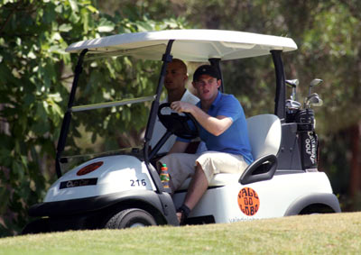 England and Manchester United striker Wayne Rooney was enjoying something of a busman's holiday when he swapped one sport for another during a trip to Portugal's luxury Vale do Lobo resort.